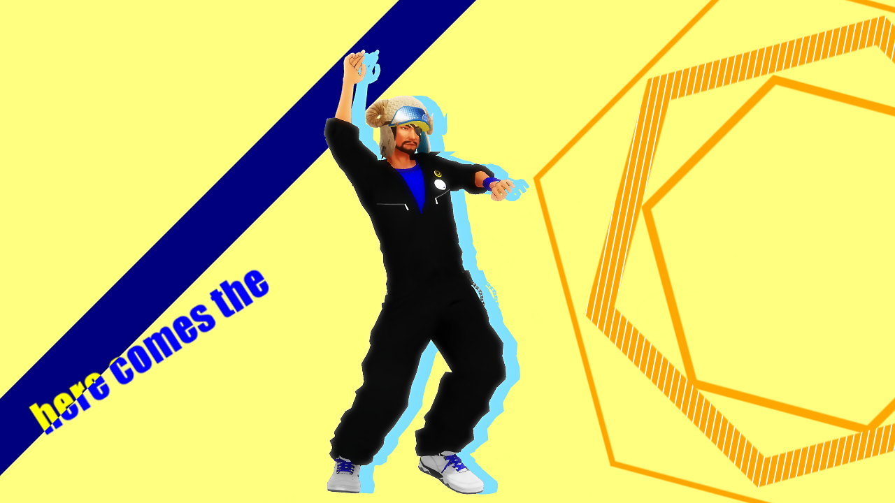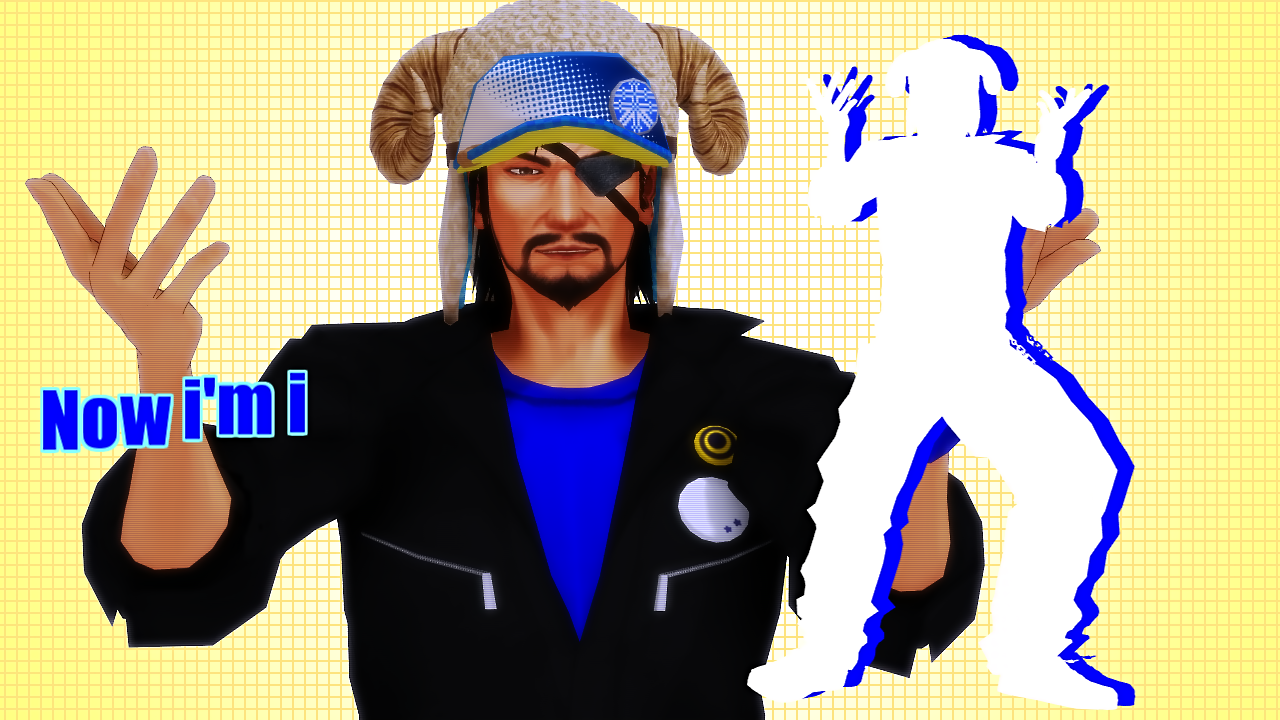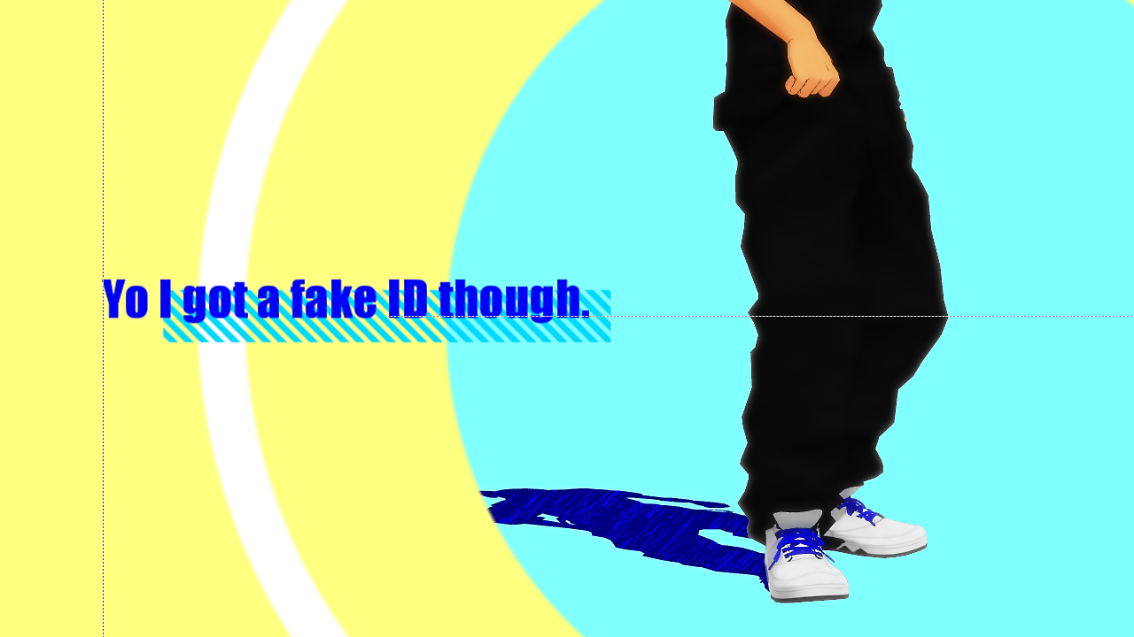 惇兄の上に背景(黄)を置いたのは此処でマスク効果で登場させるため。