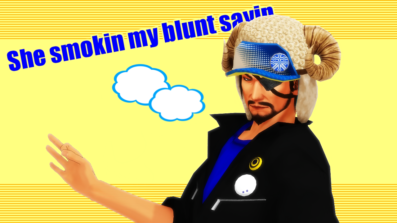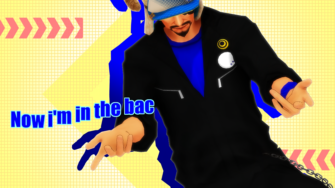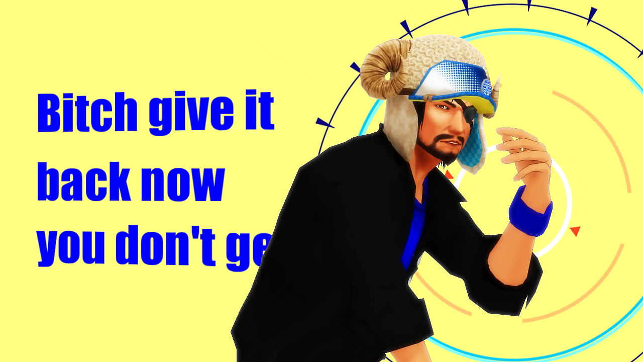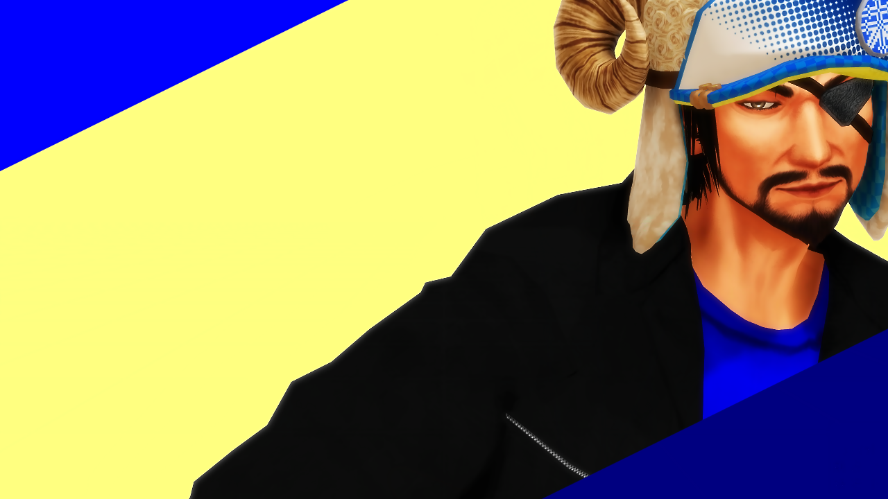 惇兄の上に背景(黄)を置いたのは此処でマスク効果で登場させるため。