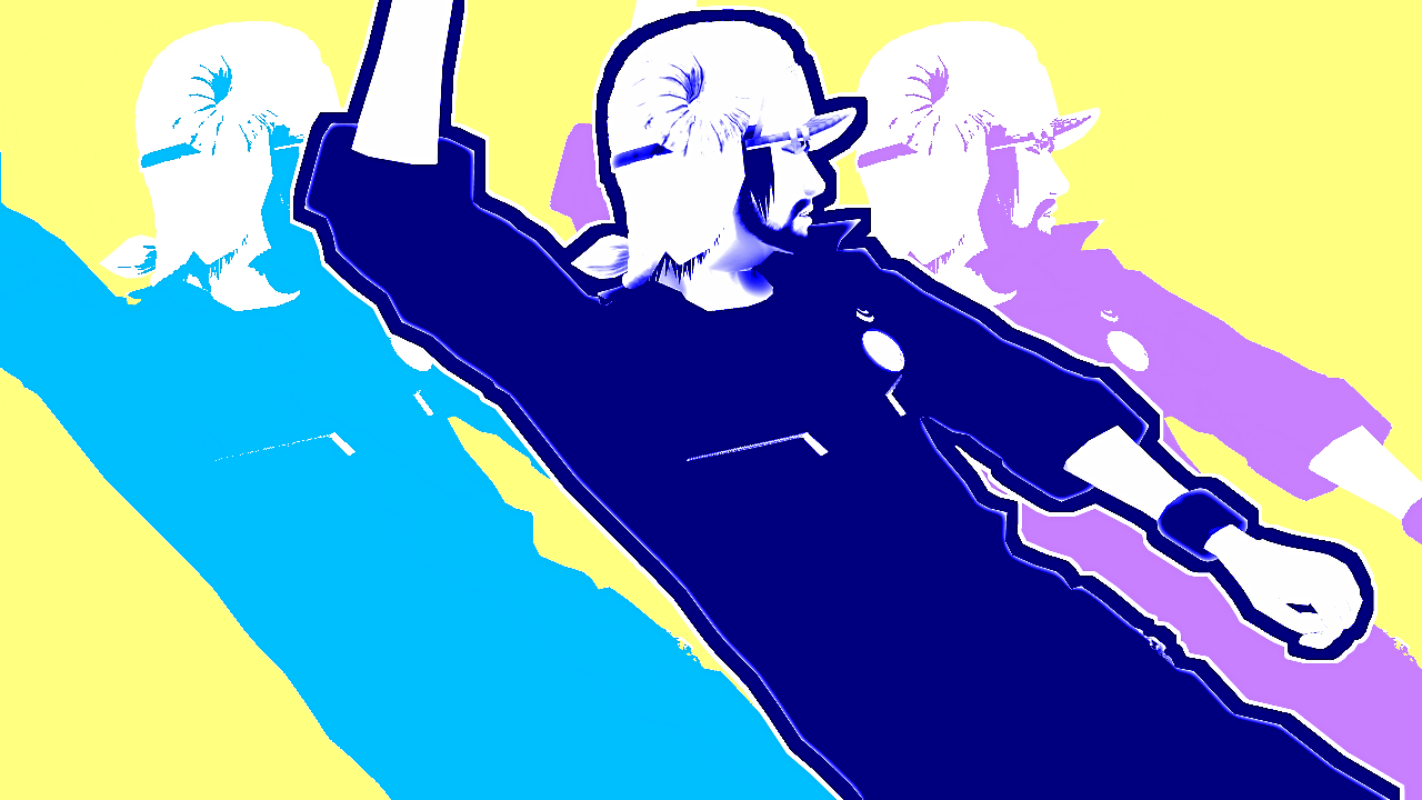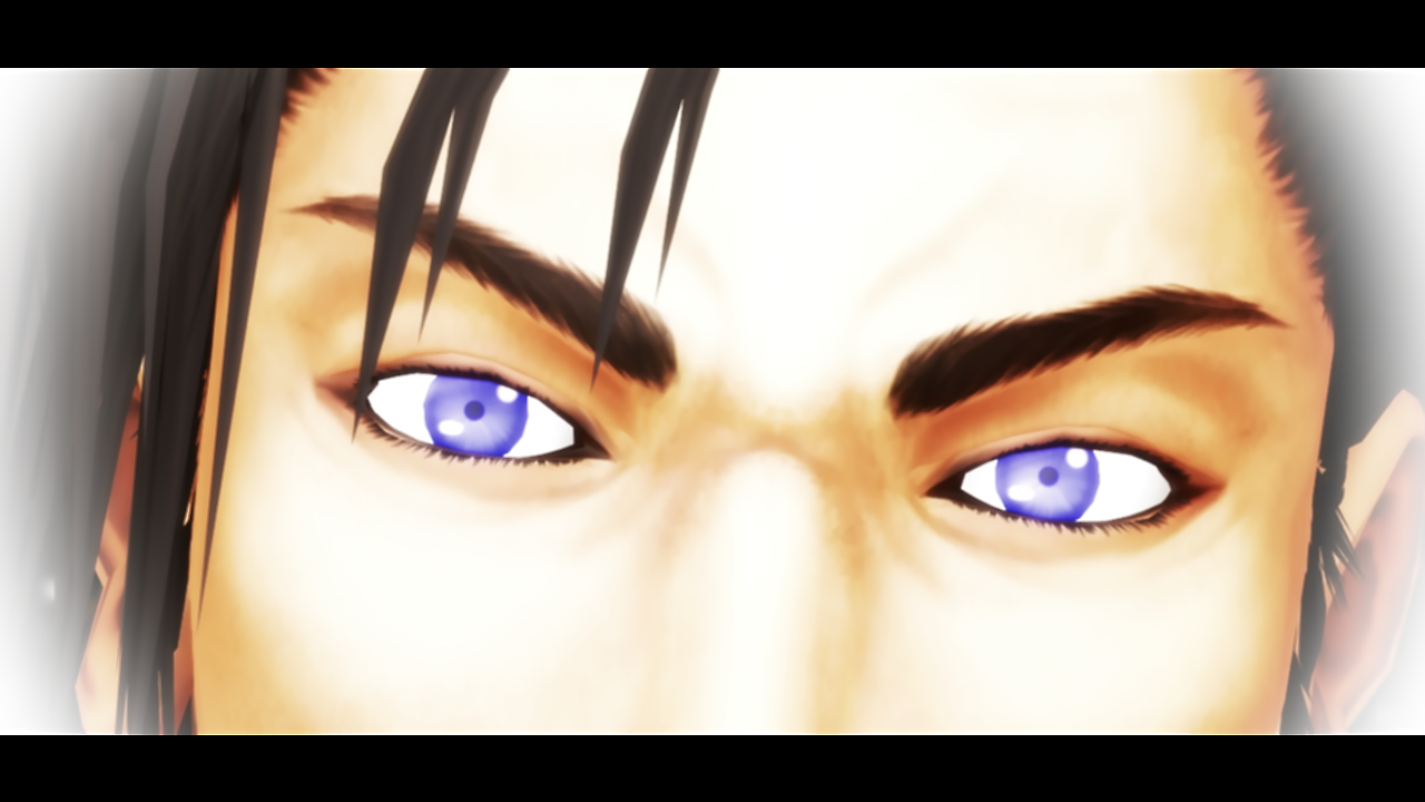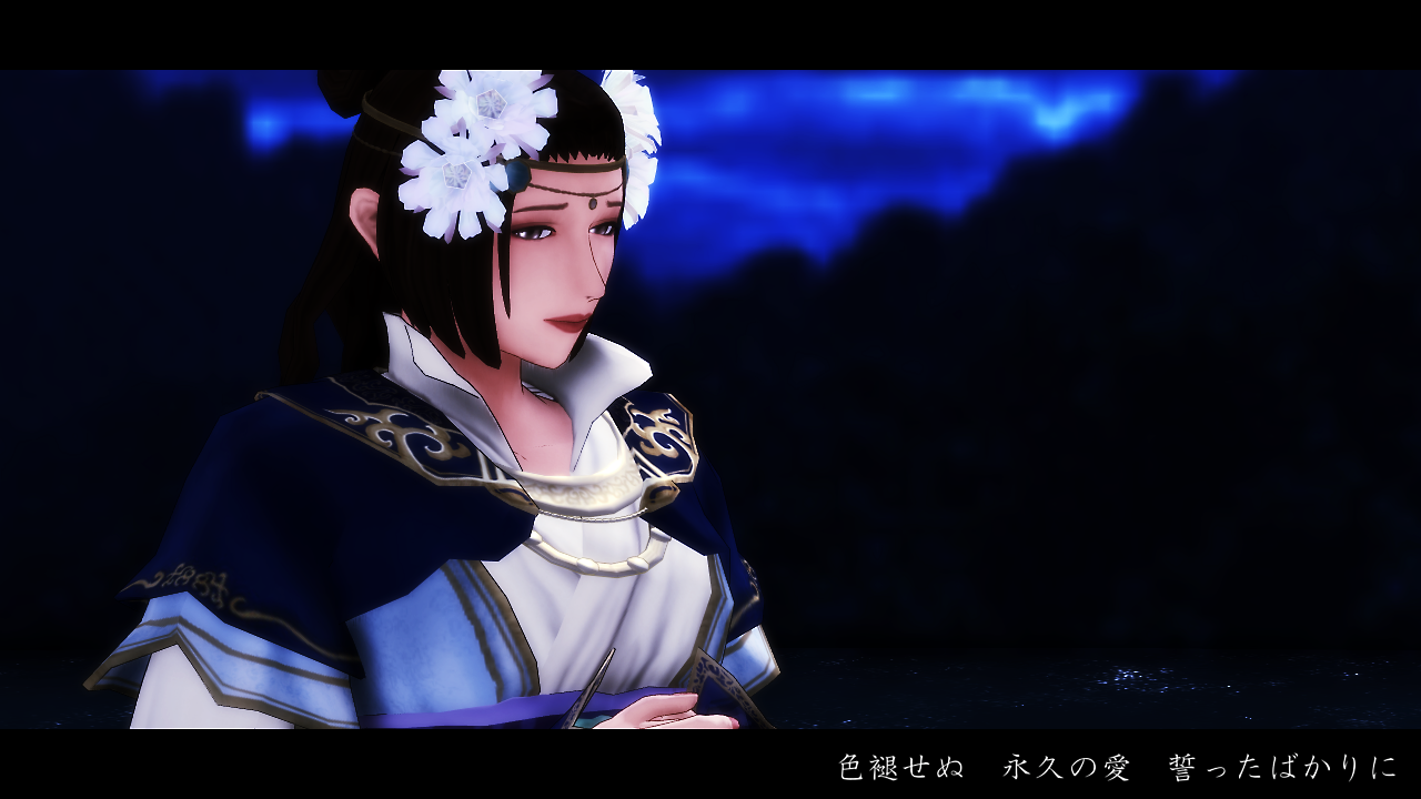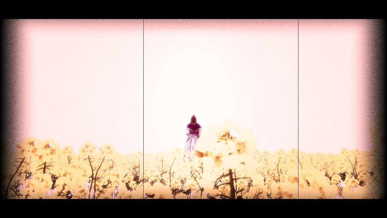 ここは惇兄を単色化+縁取り。そして再生速度を「0」で停止。静画仕様にしています。