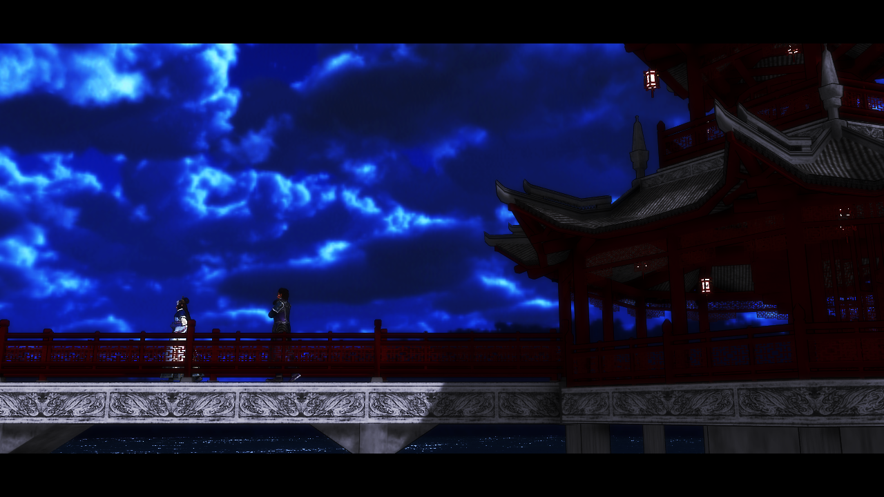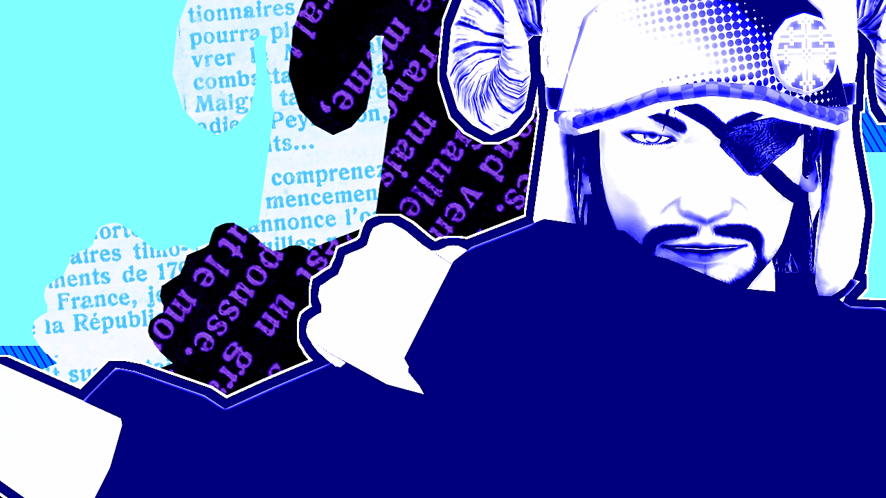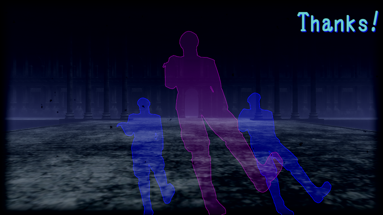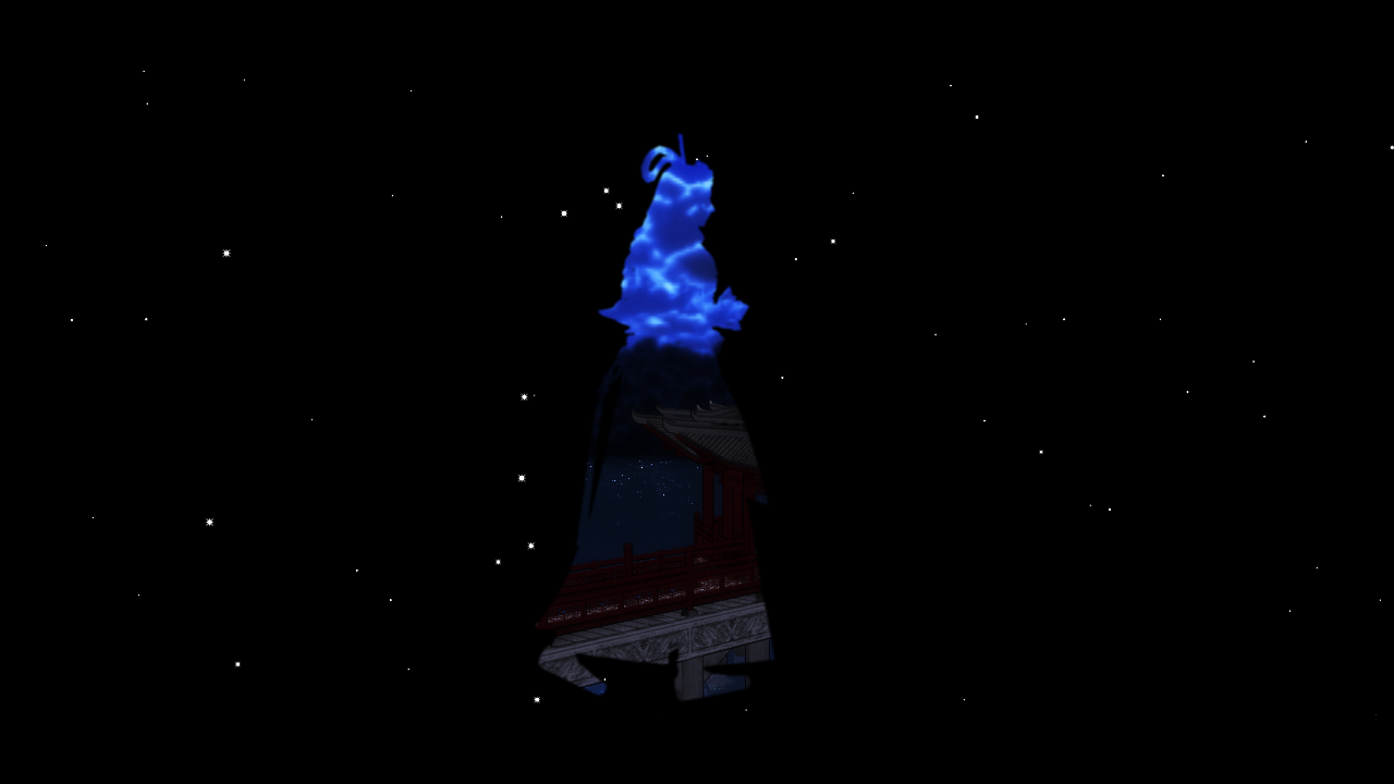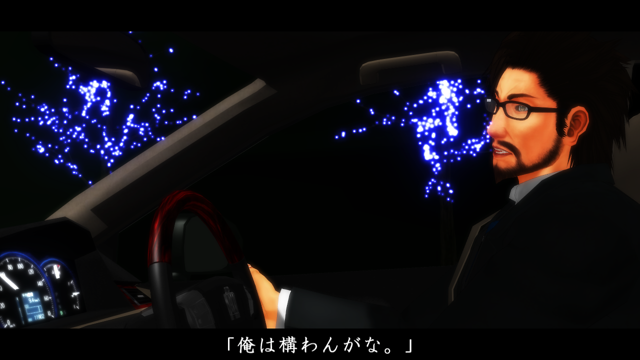 ここは惇兄を単色化+縁取り。そして再生速度を「0」で停止。静画仕様にしています。