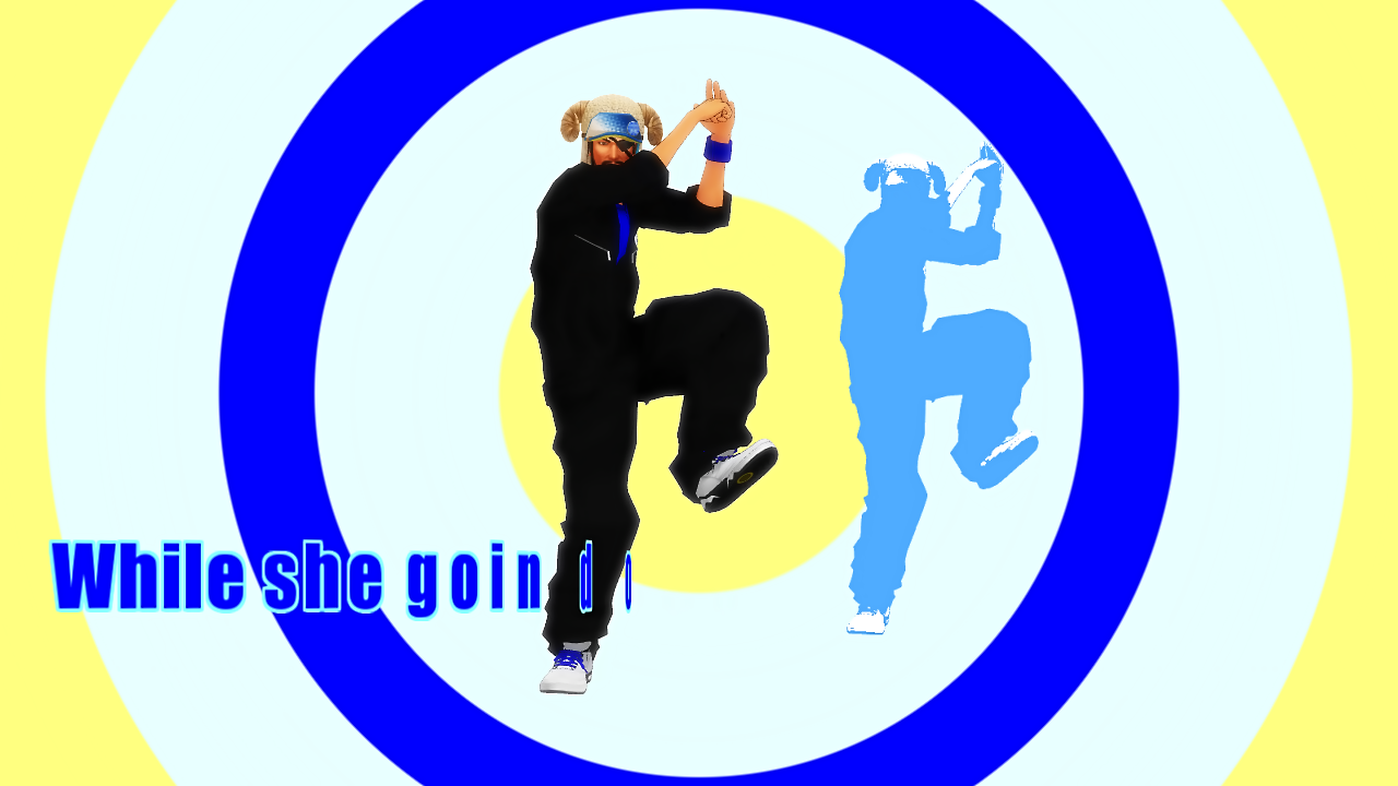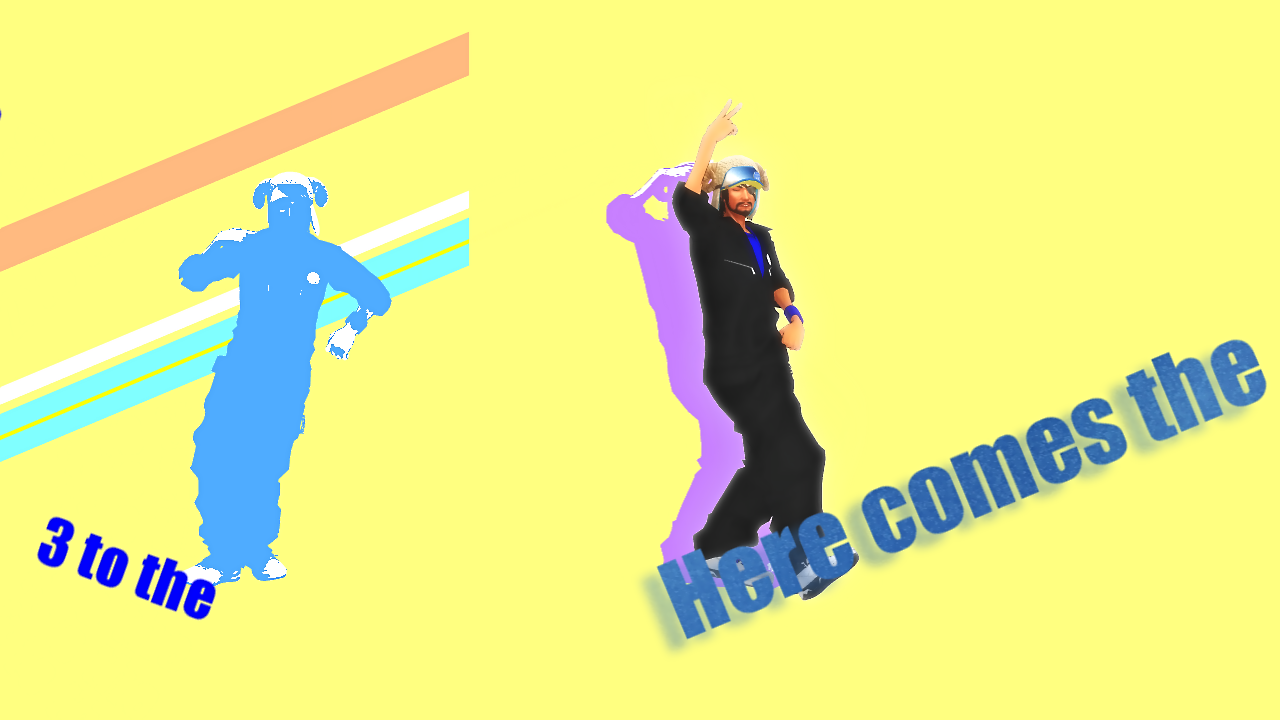 惇兄の上に背景を置く>更に背景でさつき様のアニメーション効果「斜めブラインド」の