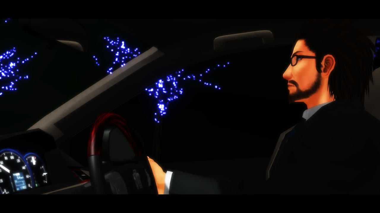 グループ制御で移動させています。タバコ一服モーションなので煙表現。安直w