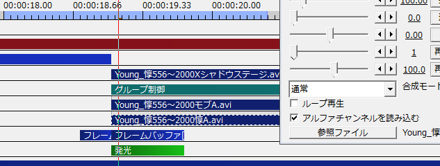 元動画はシーンに置いてシーン設定でアルファチャンネルを読み込んでいます。