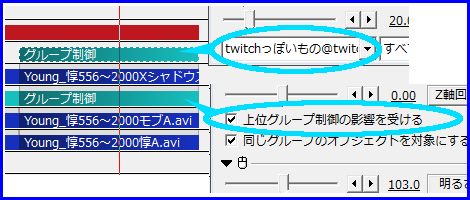 んで、プリンカ様アニメーション効果の「BPM同期色ずれ」で音に合わせて効果が出るように。