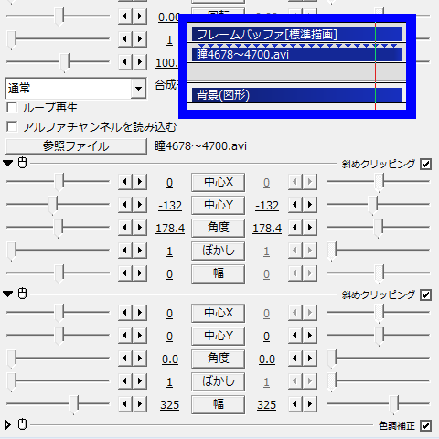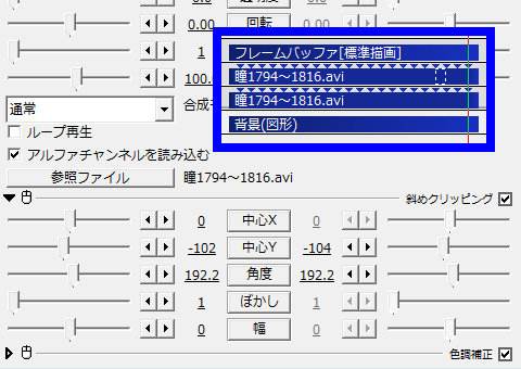 此処も再生時間「0」を使って、ずらして配置移動させる事で残像っぽい感じに。