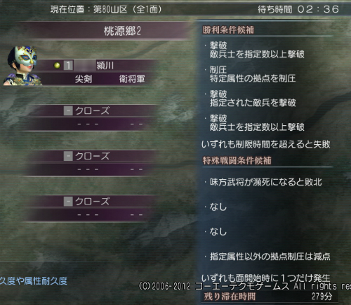 特殊戦闘条件候補「味方武将が瀕死になると敗北」