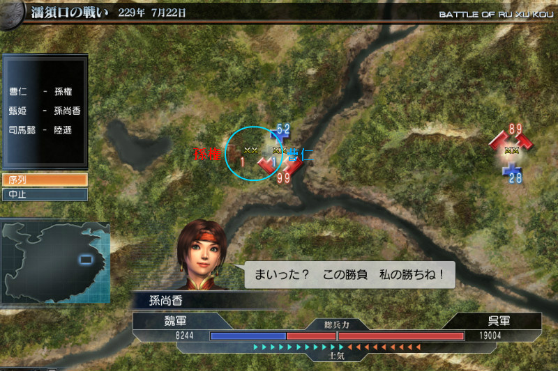 青い円の所が曹仁と孫権です。スクショタイミング悪かったなw
