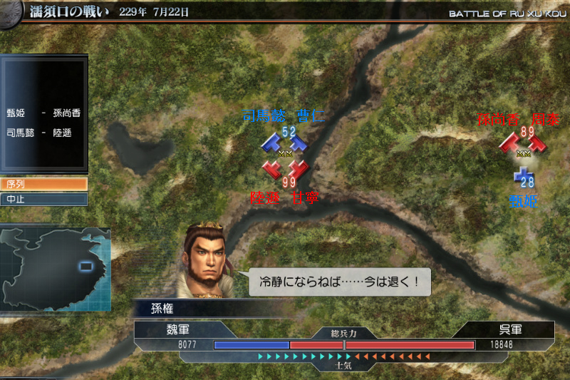 兵力1なので増えた感じが無いんだがいやいや、孫権倒して十分な戦果ですね。