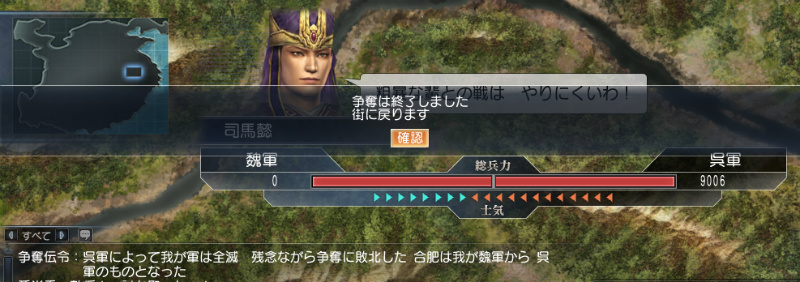 その呉軍を兵力9006まで追いつめたとなると・・・次の争奪はまた合肥を取り返せるかもしれん。