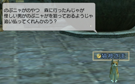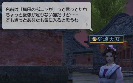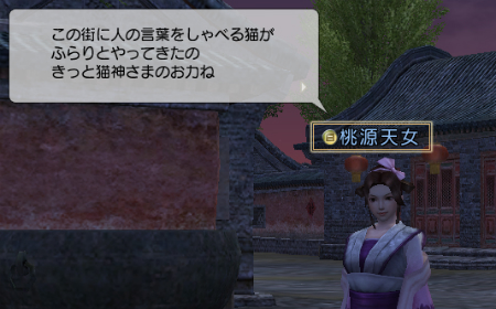 この後天女に話しかけると市場に猫神さまが居るから聞いてみてと居場所を教えてくれます。