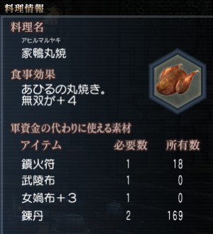 他にも↑の様にアイテムや錬丹(課金orドロップ)でも料理が完成します。