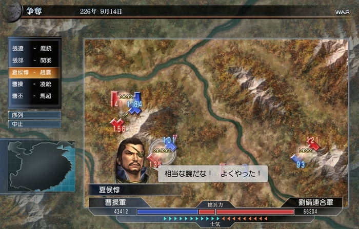 信頼と安心の張遼将軍の早々な撤退も珍しいもんです。このスクショでは既に撤退の張遼><
